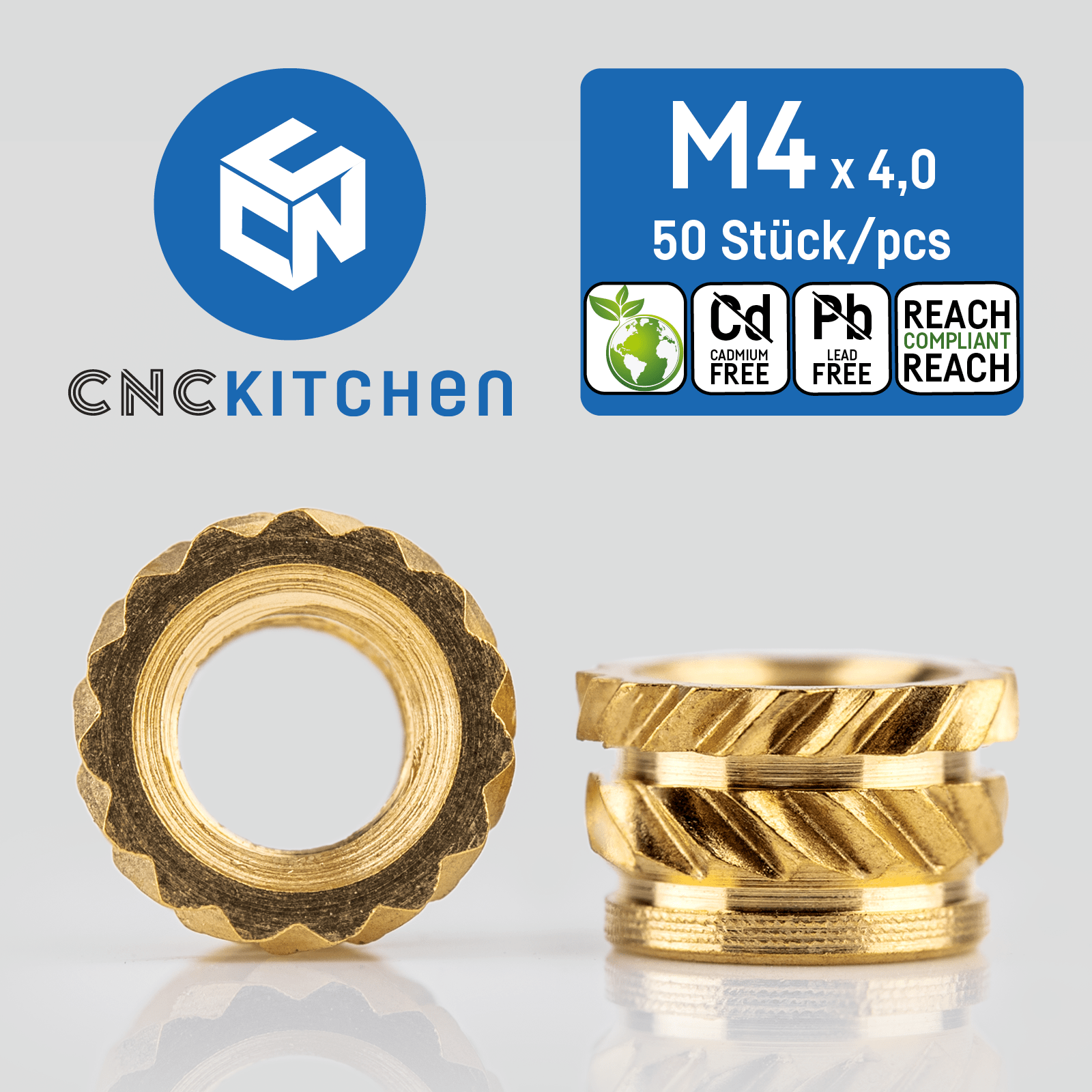 Gjengeinnsatser / Threaded inserts fra CNC Kitchen.