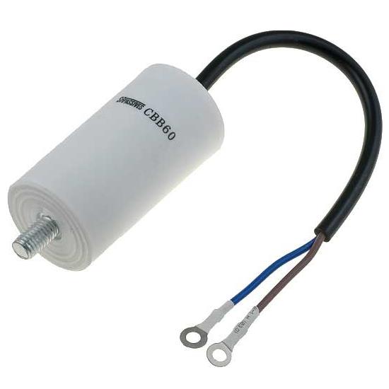 Motorkondensator / driftkondensator. Kan även användas som startkondensator så länge kapacitansen är korrekt.