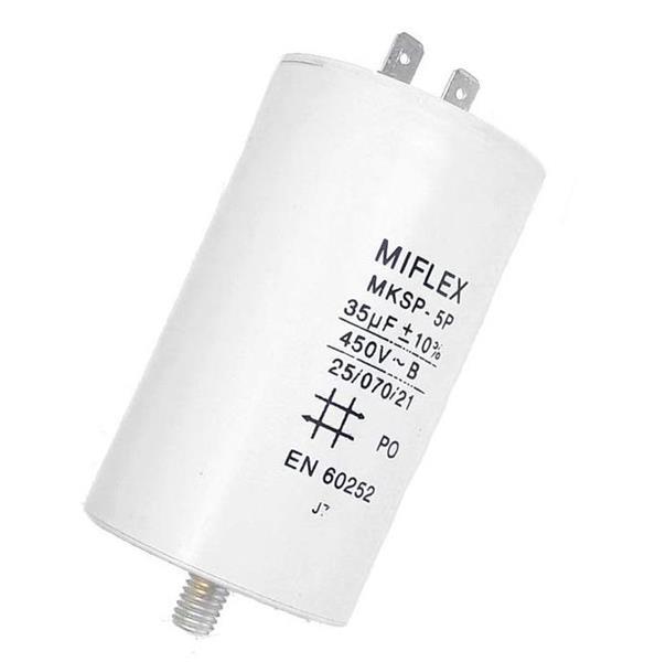 Motorkondensator / driftkondensator. Kan även användas som startkondensator så länge kapacitansen är korrekt.