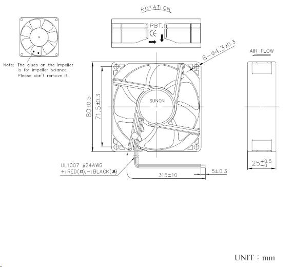 Fläkt med Mag-Lev (magnetisk levitation) lager från den världsberömda fläktillverkaren Sunon.