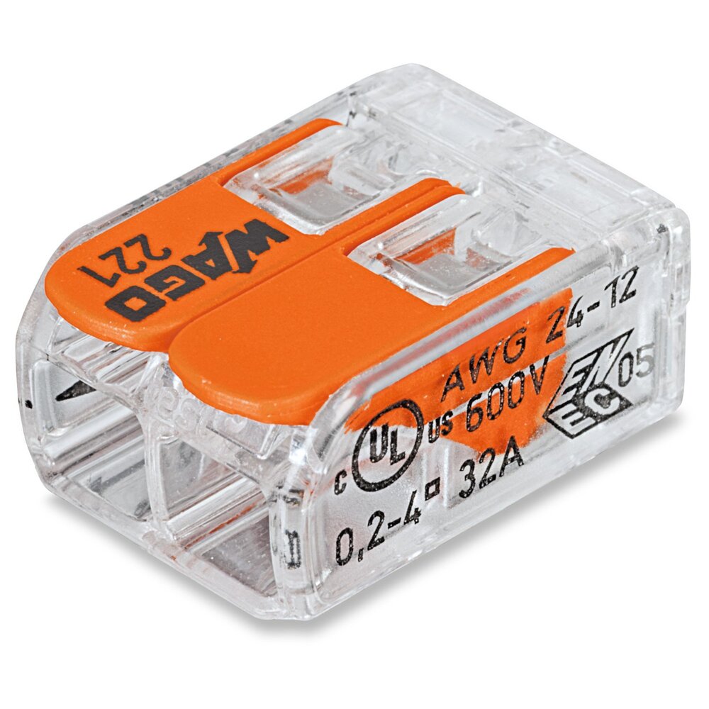 221-klemmene fra Wago passer til alt fra kobling av svakstrømsledere til elektriske ovner. Forskjellige ledertyper kan benyttes med denne klemmen. Lett å bruke da denne åpnes og lukkes ved hjelp av en praktisk hendel. Høy strømbæreevne på 32A. Kan benyttes med tverrsnitt fra 0,5-4mm².