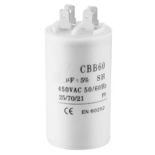 Motorkondensator / driftkondensator. Kan även användas som startkondensator så länge kapacitansen är korrekt.