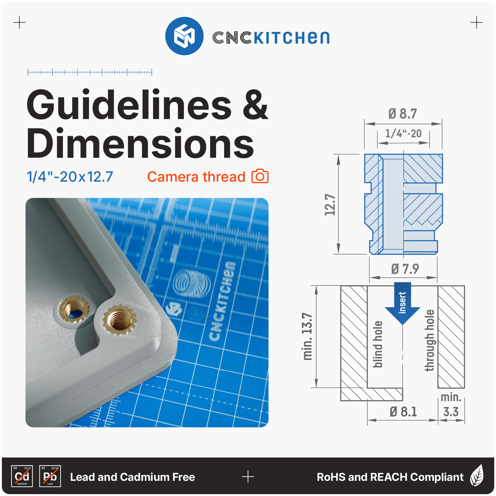 – CNC Kitchen gjengeinnsats-sett – spesielt designet for 3D printede deler (PLA, PETG, ABS, etc.)