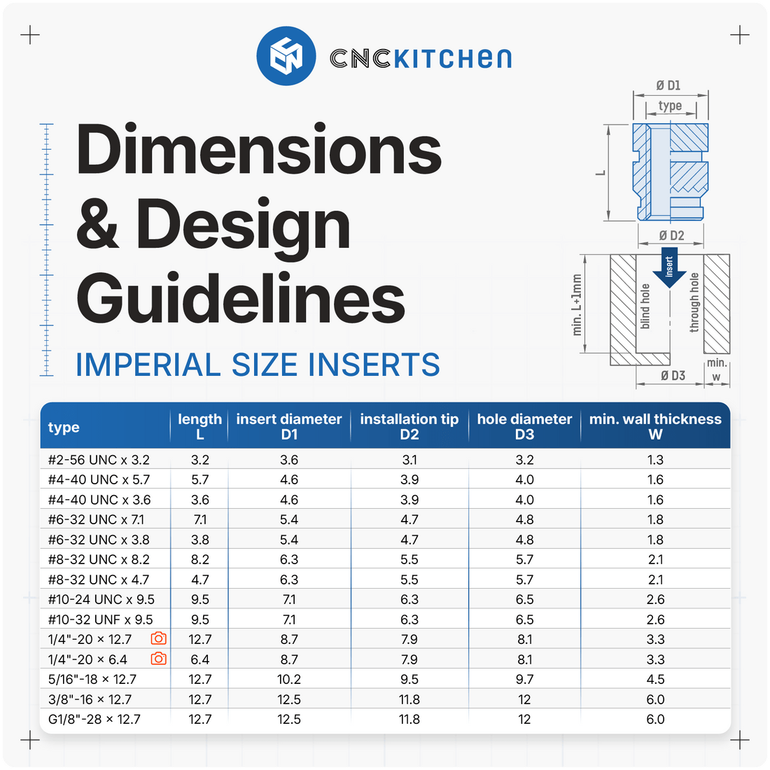 Gjengeinnsatser / Threaded inserts fra CNC Kitchen.