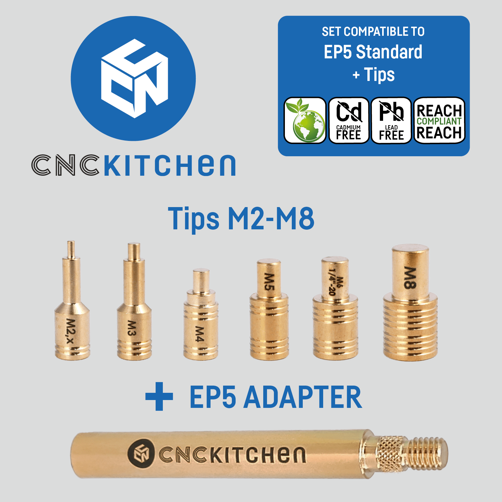 CNC Kitchen loddebolt-spiss-sett for gjengeinnsatser.