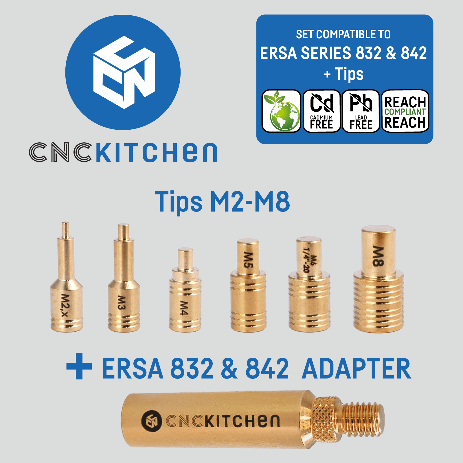 CNC Kitchen loddebolt-spiss-sett for gjengeinnsatser.