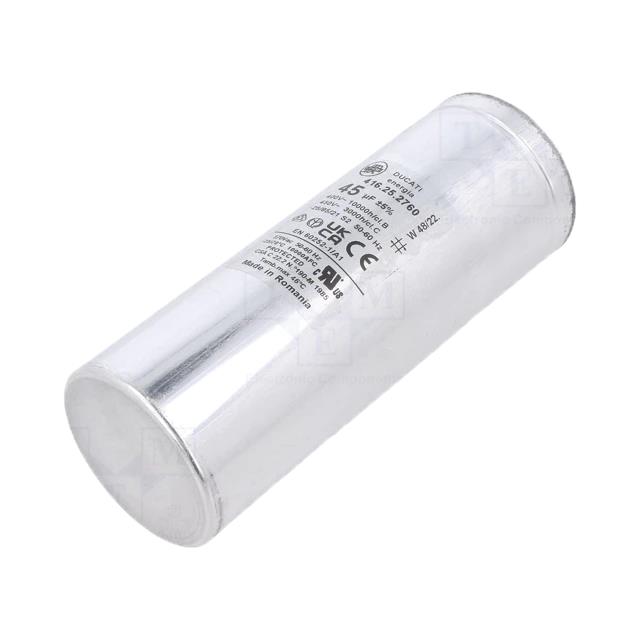 Motorkondensator / driftkondensator. Kan även användas som startkondensator så länge kapacitansen är korrekt.