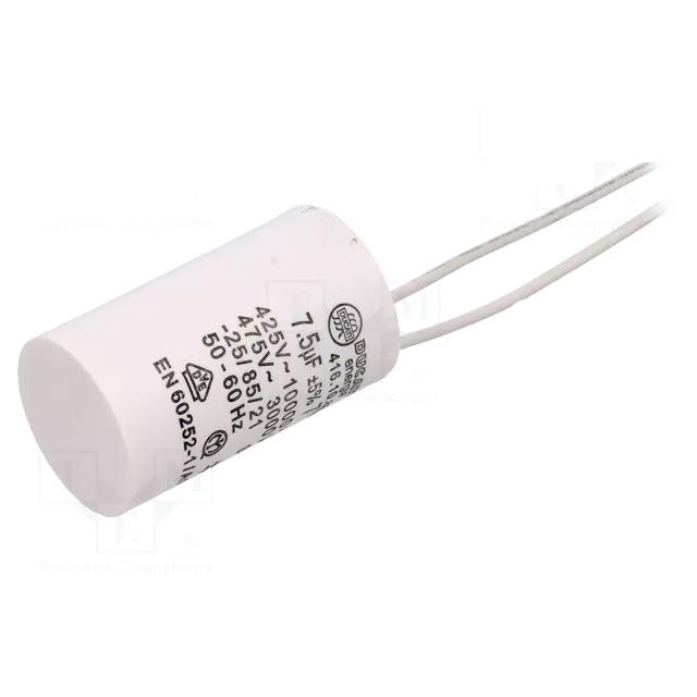 Motorkondensator / driftkondensator. Kan även användas som startkondensator så länge kapacitansen är korrekt.