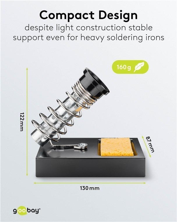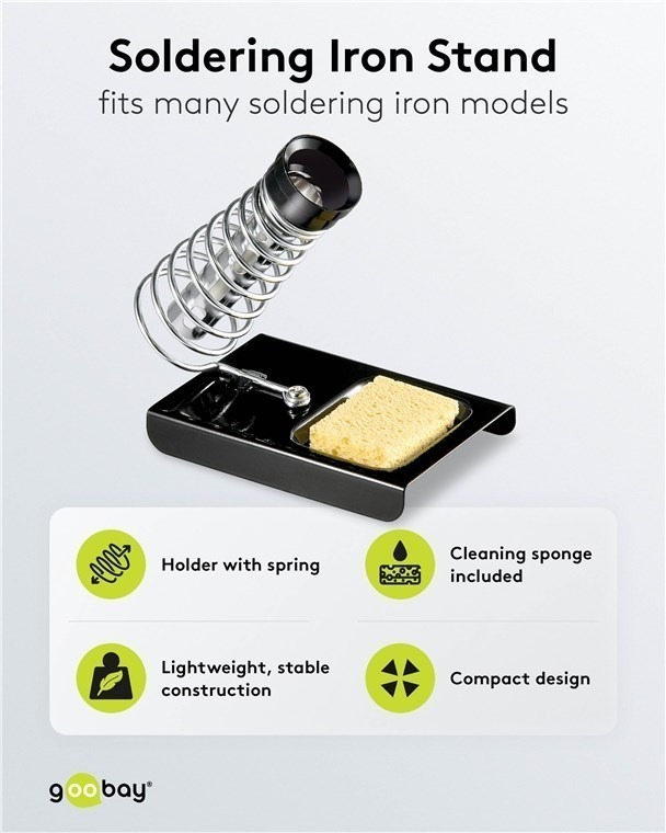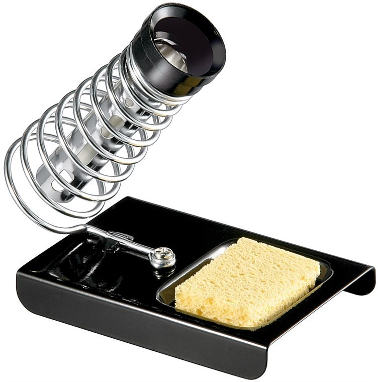 Loddebolt-holder med fjær for å trygt holde den varme loddebolten unna arbeidsbordet når den ikke er i bruk.