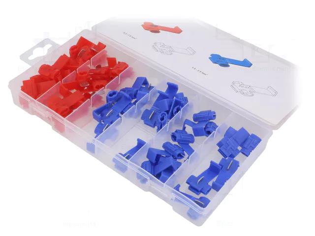 50 stk «strømtyver» – typisk brukt for enkelt å skjøte på en ledning inn på en annen eksisterende ledning. Bilstereo o.l.