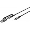 Kabel - USB C-2xC, 60W, 1.5m, metallplugger, 2-i-1