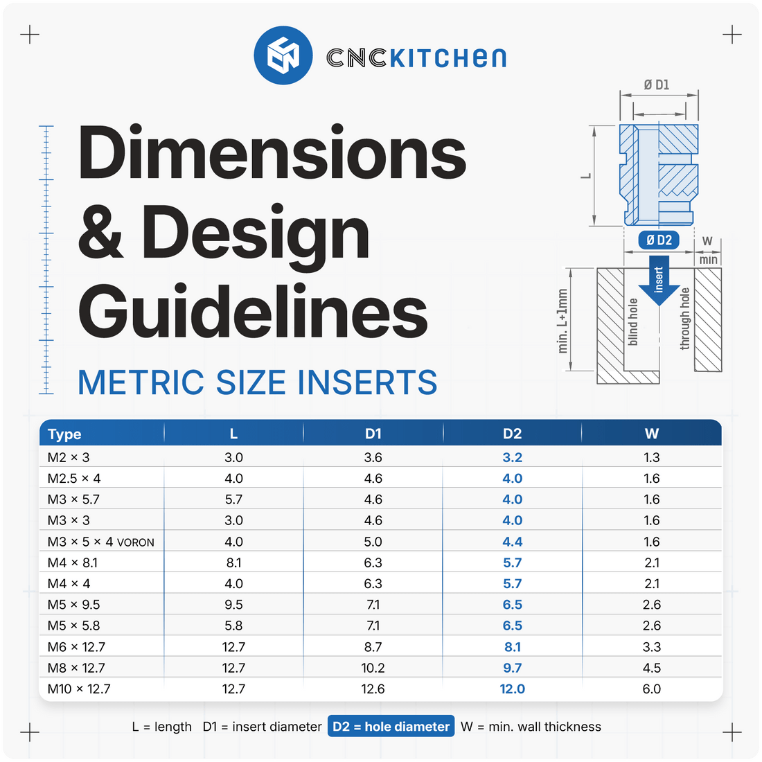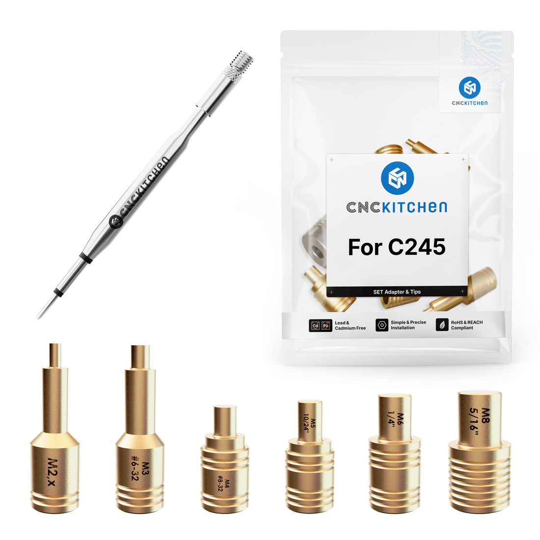 CNC Kitchen loddebolt-spiss-sett for gjengeinnsatser.